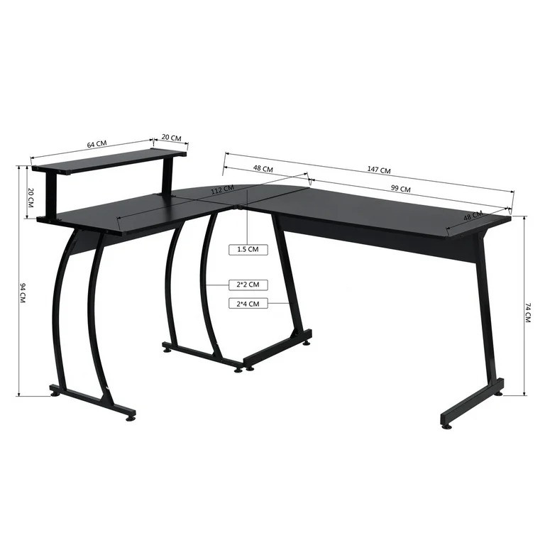 Dimensiones y peso: tamaño de escritorio L (112 + 147) * W48 * H74cm.