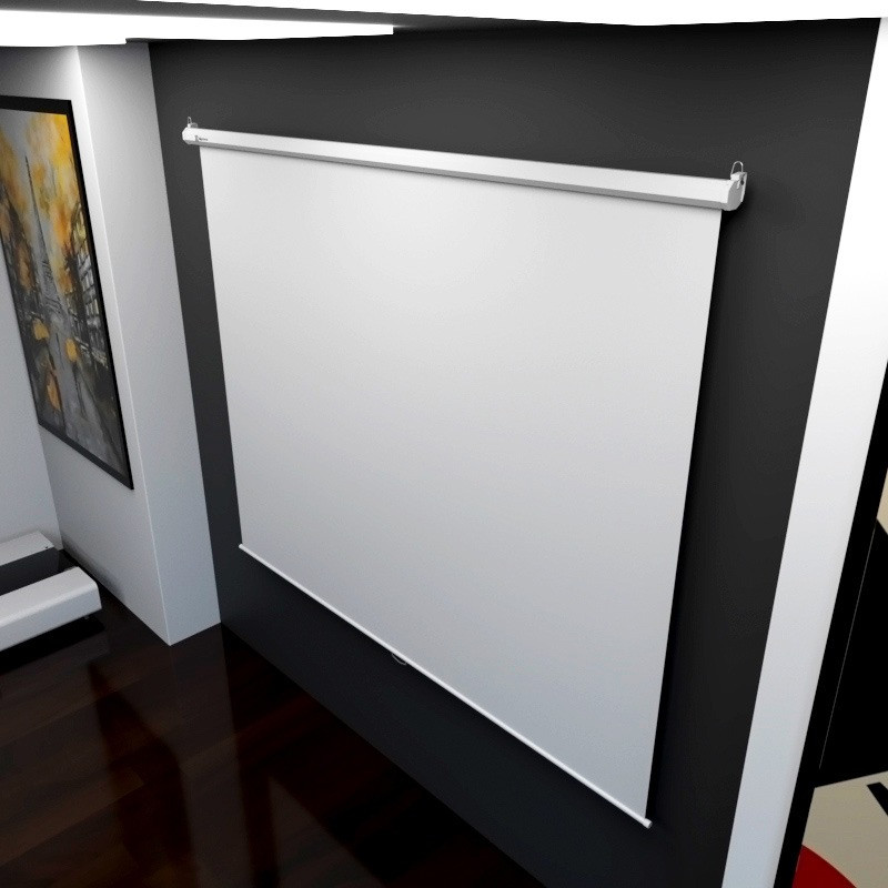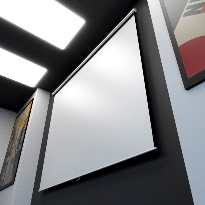 Superficie de Proyección: La pantalla es de color blanco mate con un marco negro para mejorar el contraste de la imagen.