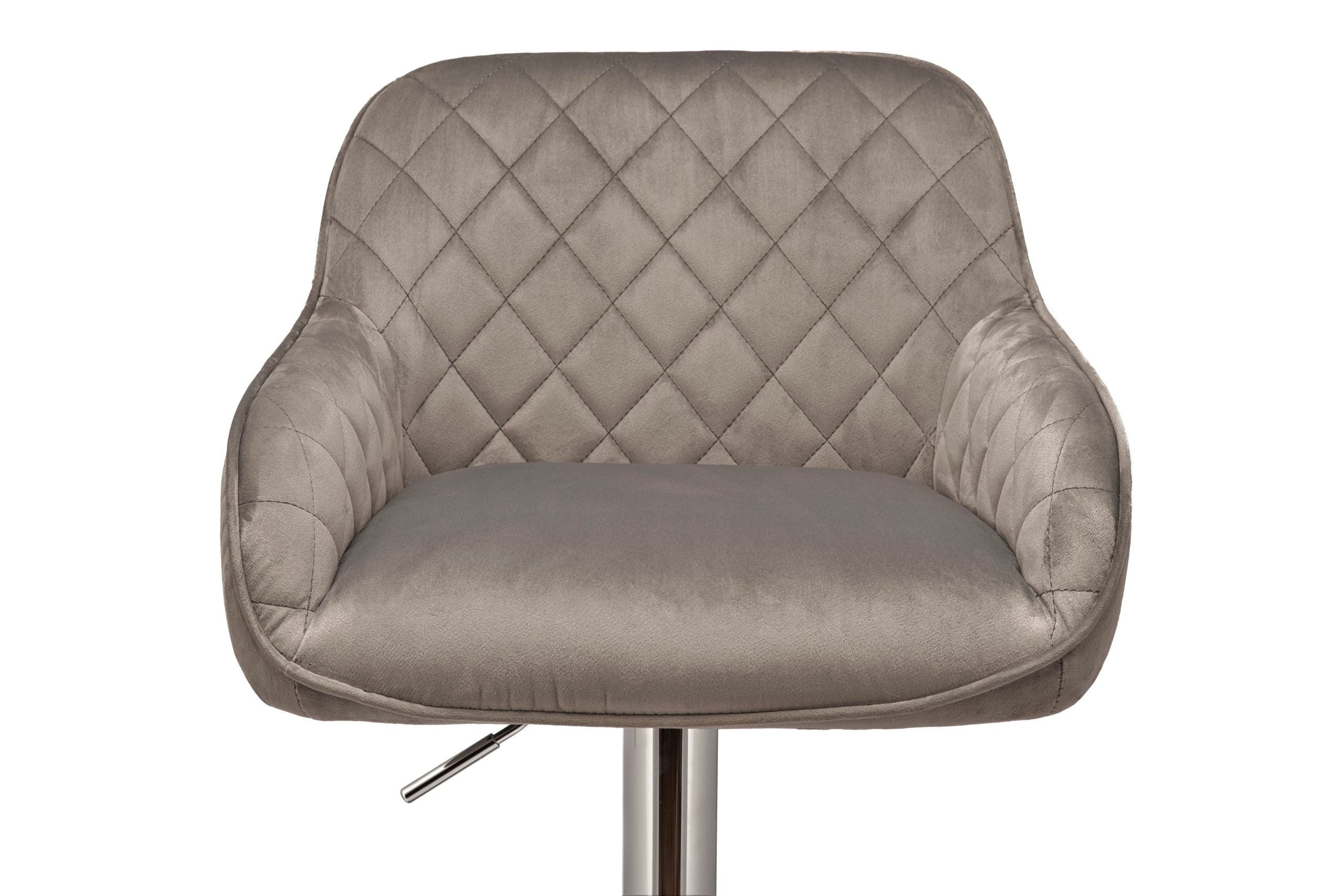 - Asiento acolchado de terciopelo gris claro con costuras de diamante