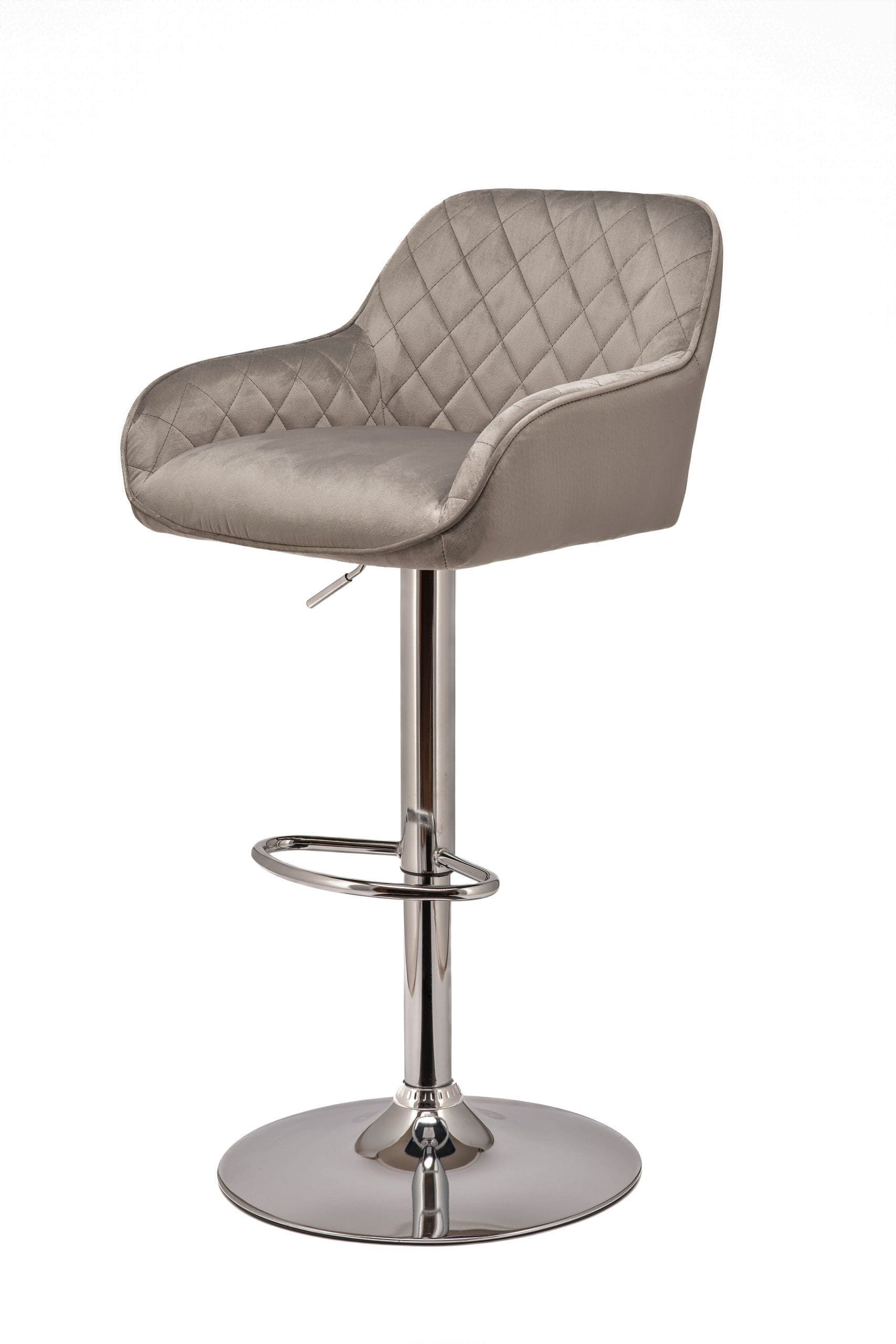 Aunque el taburete se mantiene en su sitio, puedes girarlo 360 grados. Atrévete a crear un tema con taburetes de terciopelo gris claro. También son ideales como taburetes de mostrador y taburetes de desayuno para islas de cocina.