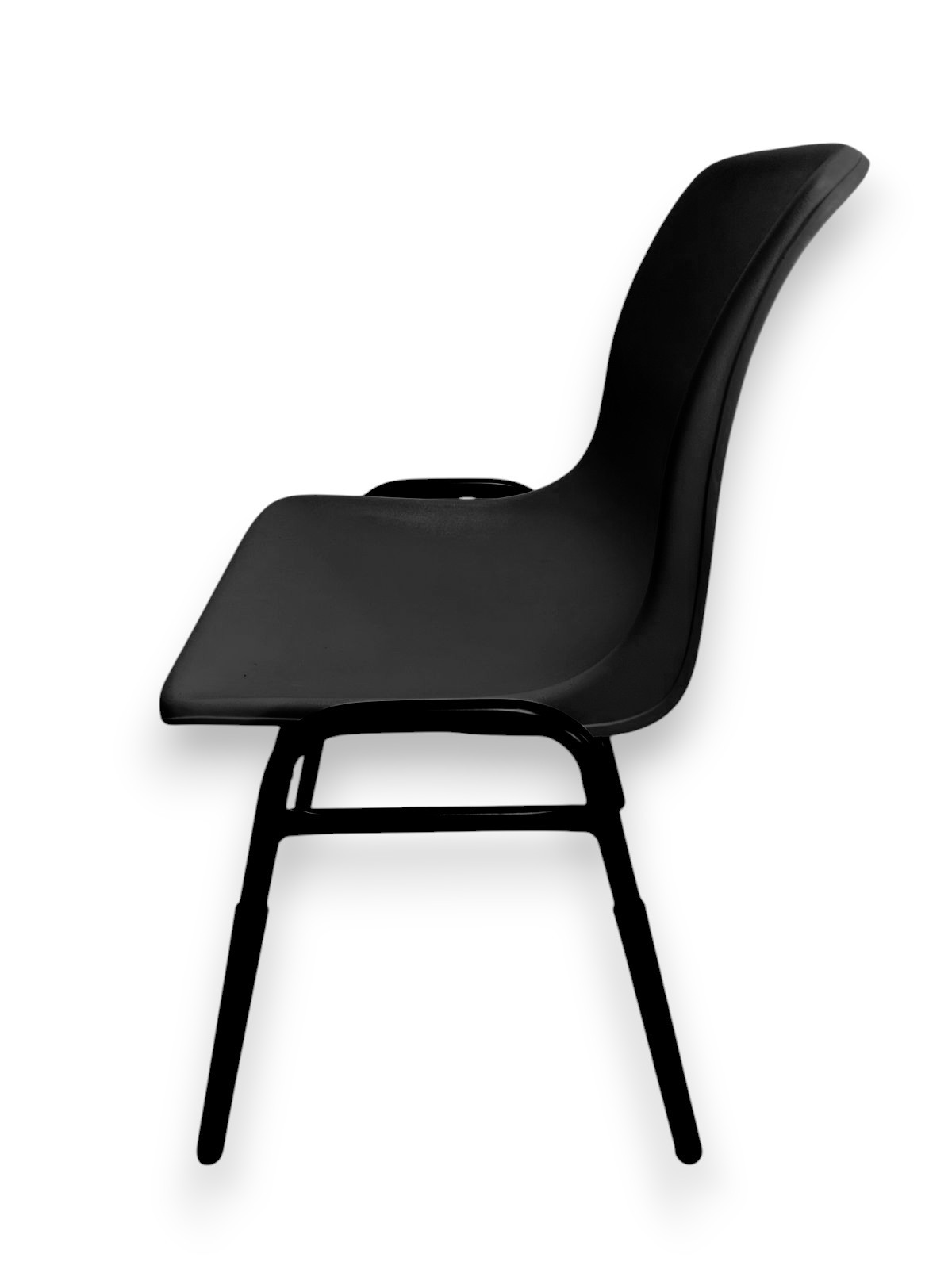 Su diseño permite apilar varias sillas, lo que facilita el almacenamiento y ahorra espacio, siendo ideal para diversos entornos como aulas, oficinas, eventos o incluso el hogar.